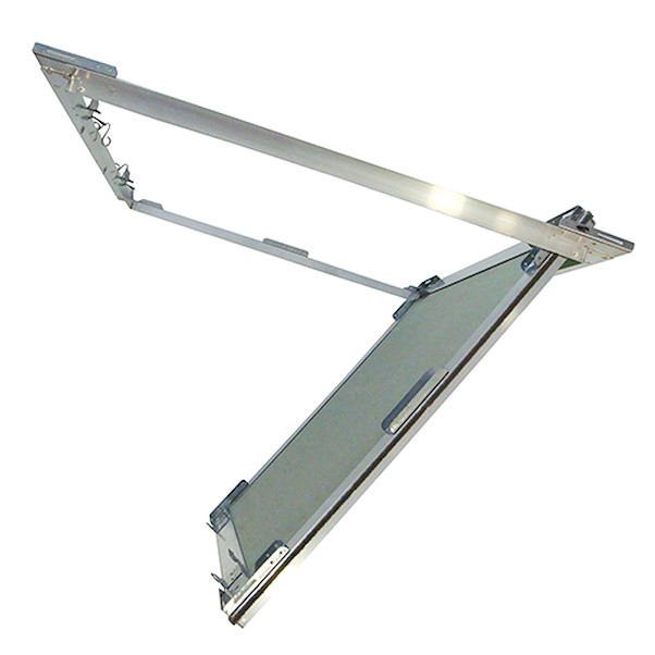 Permitem uma abertura tipo basculante (molas para cima) em estruturas de gesso cartonado, para acessos técnicos ou ventilação. São constituídos por perfis em alumínio, placa de gesso cartonado hidrófuga, esquadros de reforço galvanizados e molas em aço inox.